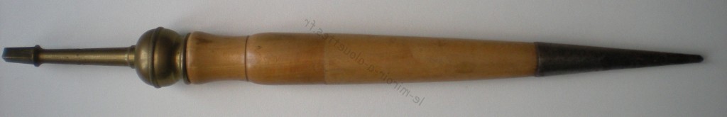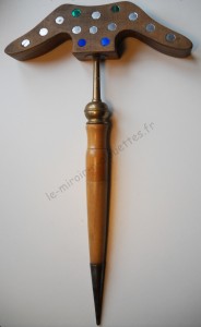 Miroir avec une tête en forme d'ailes en noyer, équipé de 26 glaces en cristal blanc premier choix et 14 en cristal de couleurs variées. Le pied lui est composé de trois pièces, tourillon, garniture en buis ou en bronze et douille en cuivre. Fabrication irréprochable.