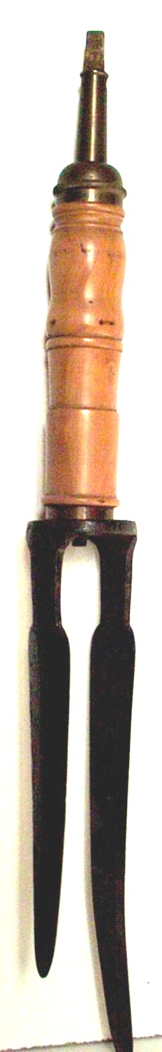 Ce pied a un avantage certain sur le pied classique en bois. Il s'implante très facilement dans un sol dur et a le mérite de ne pas se déchausser du fait de la traction exercée sur lui avec la ficelle. Il faudra cependant le planter la face large des fourches perpendiculairement au tirage de la ficelle, la plus petite fourche sera toujours du côté de la personne qui tire la ficelle.