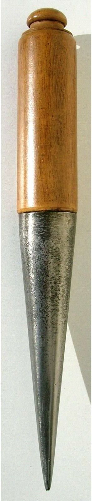 Alternative élégante au maillet, l'épissoir permettait une plantation plus contrôlée et précise. Sa forme allongée et effilée facilitait l'ancrage dans les sols difficiles tout en préservant l'alignement parfait du miroir.