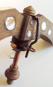 L'appareil utilise la force centrifuge : une tige mobile (L) se dégage des dentelures lors de la rotation rapide et retombe pour engager le rechargement automatique de la cordelette lorsque la vitesse diminue. Ce système permettait d'utiliser une ailette unique ou deux ailettes croisées/parallèles.